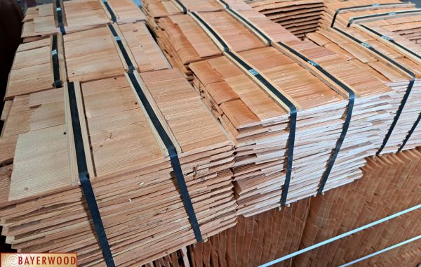 keilförmig gespalten oder als Rundschindeln